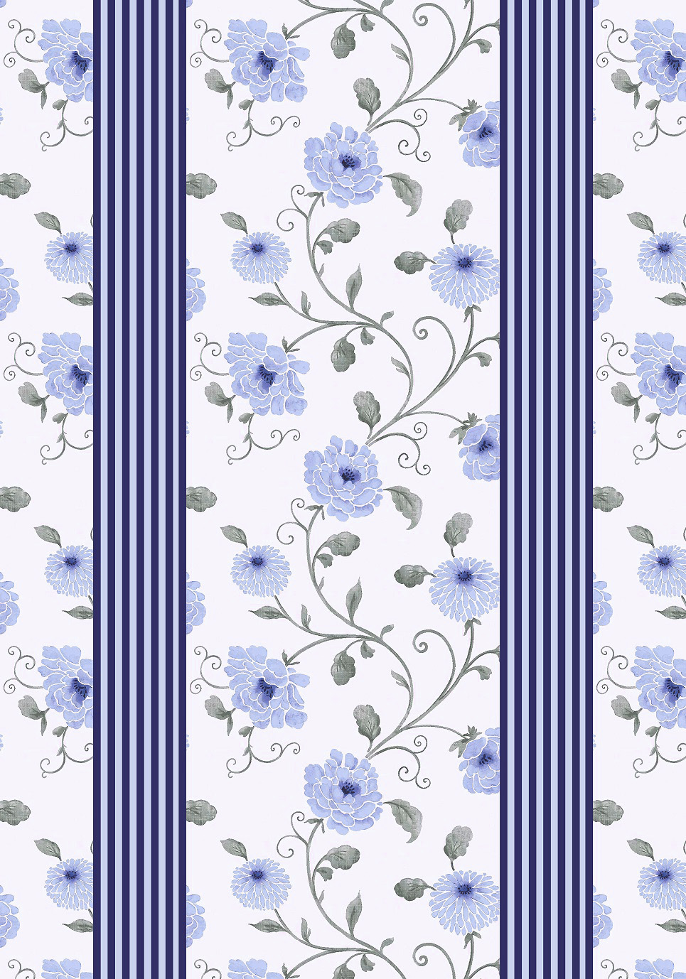 Attraktives Design: Harmonische Kombination aus weißer Grundfarbe mit zarten blauen Blumen und eleganten Streifen-Details.