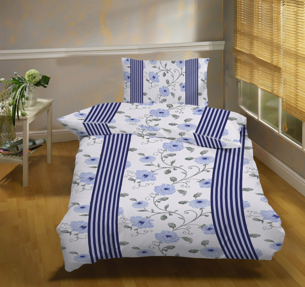 Biber-Bettwäsche 135x200: Baumwolle, Blau/Weiß