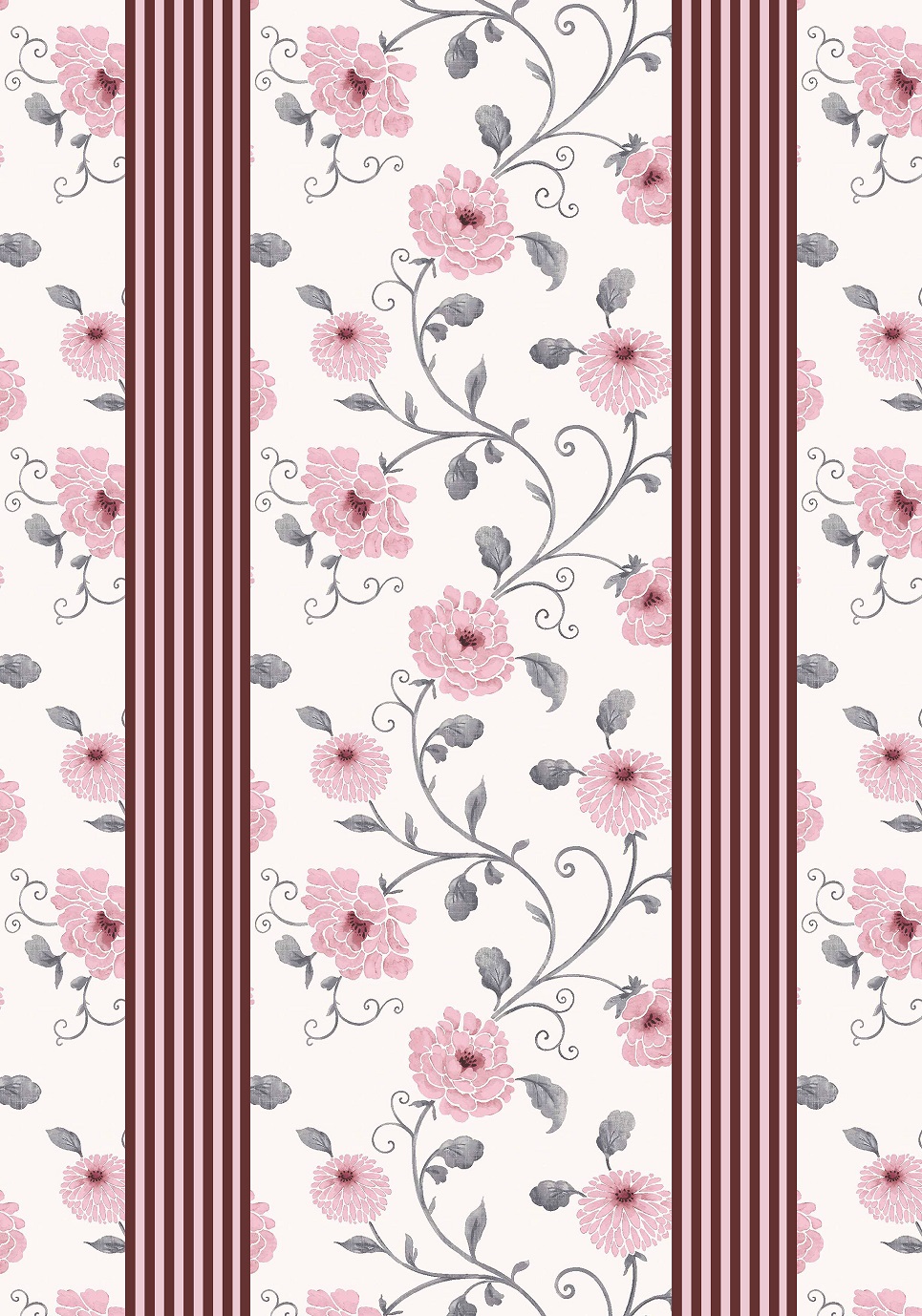 Attraktives Design: Harmonische Kombination aus weißer Grundfarbe mit zarten blauen Blumen und eleganten Streifen-Details.