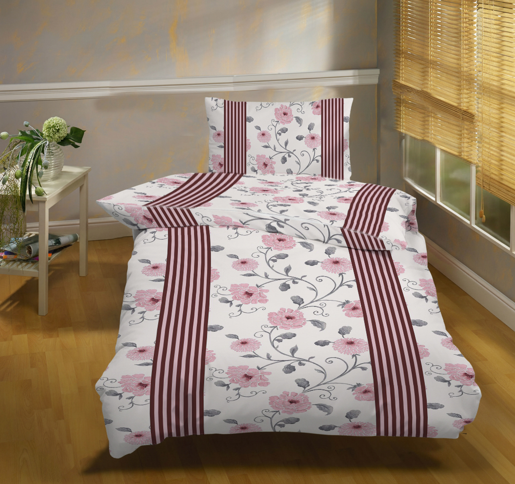 Biber-Bettwäsche 135x200: Baumwolle, Rot/Weiß