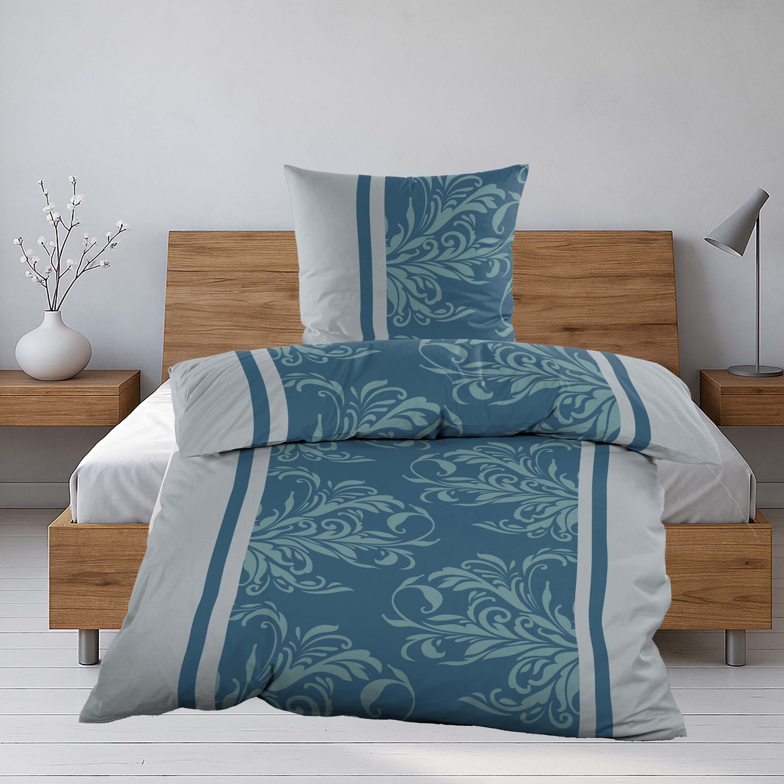 Gefertigt aus 100% reiner Baumwolle, bietet dieses Bettwäsche-Set nicht nur Wärme, sondern auch alle Vorteile einer natürlichen Faser: Es ist außergewöhnlich hautsympathisch, sanft zu empfindlicher Haut und dank seiner hohen Atmungsaktivität sorgt es für einen optimalen Feuchtigkeitstransport. Das Ergebnis ist ein stets trockenes und gesundes Schlafklima. Das Set besticht durch sein stilvolles Erscheinungsbild in den Maßen 135x200 cm. Die harmonische Farbgebung aus gediegenem Petrol Türkis und warmem Silbergrau, kombiniert mit eleganten Streifen und einem subtilen Schnörkelmuster, fügt sich perfekt in moderne und klassische Einrichtungsstile ein und setzt einen ruhigen, geschmackvollen Akzent in Ihrem Schlafzimmer. Ein praktischer, verdeckter Reißverschluss macht das Wechseln der Bezüge zum Kinderspiel. Zudem ist die Bettwäsche pflegeleicht und für eine lange Lebensdauer konzipiert. Erleben Sie den Unterschied, den hochwertige Biber Bettwäsche in Ihrem Zuhause machen kann, und freuen Sie sich jede Nacht auf Ihre Wohlfühloase.