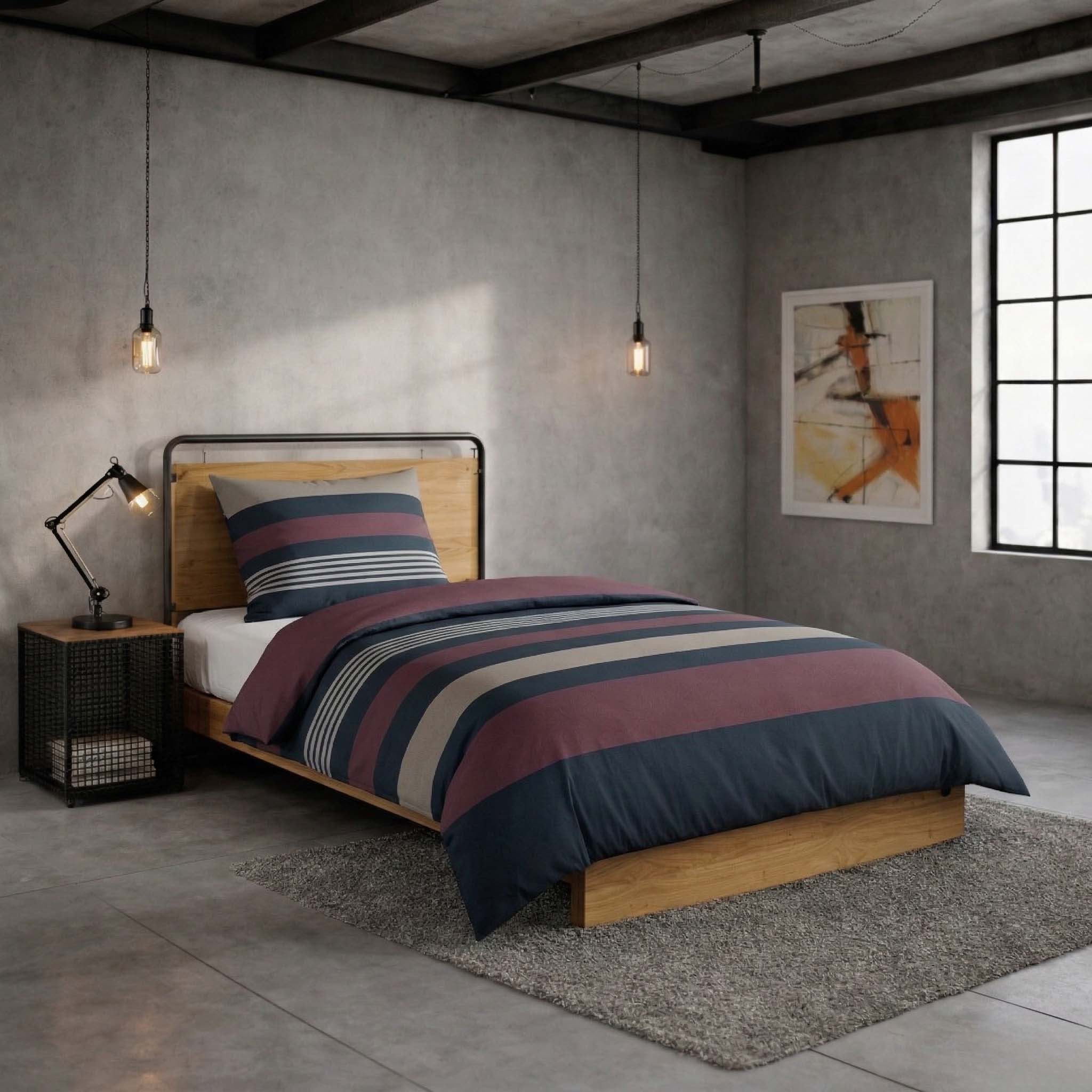 Das zeitlose Streifenmuster setzt stilvolle Akzente in jedem Schlafzimmer. Die Farbkombination aus tiefem Anthrazit, sanftem Hellgrau und einem warmen Beere-Ton wirkt modern und edel zugleich. Es ist eine harmonische Farbpalette, die Ruhe ausstrahlt und sich wunderbar in viele Einrichtungsstile einfügt. Mit der Standardgröße von 135x200 cm für den Deckenbezug und 80x80 cm für den Kissenbezug ist die Bettwäsche passend für gängige Einzelbetten.