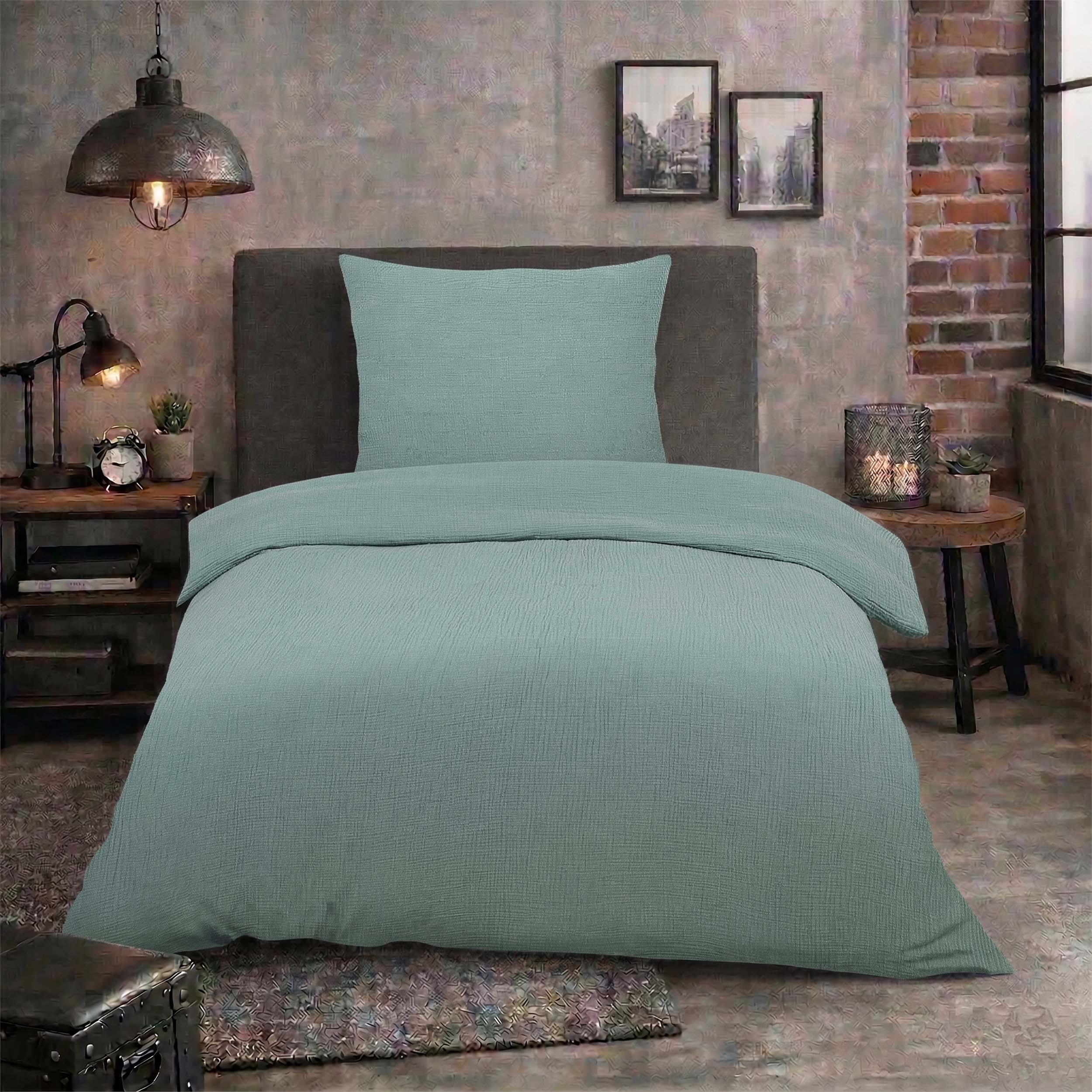 Musselin Bettwäsche 135x200 cm in Salbei Unifarben