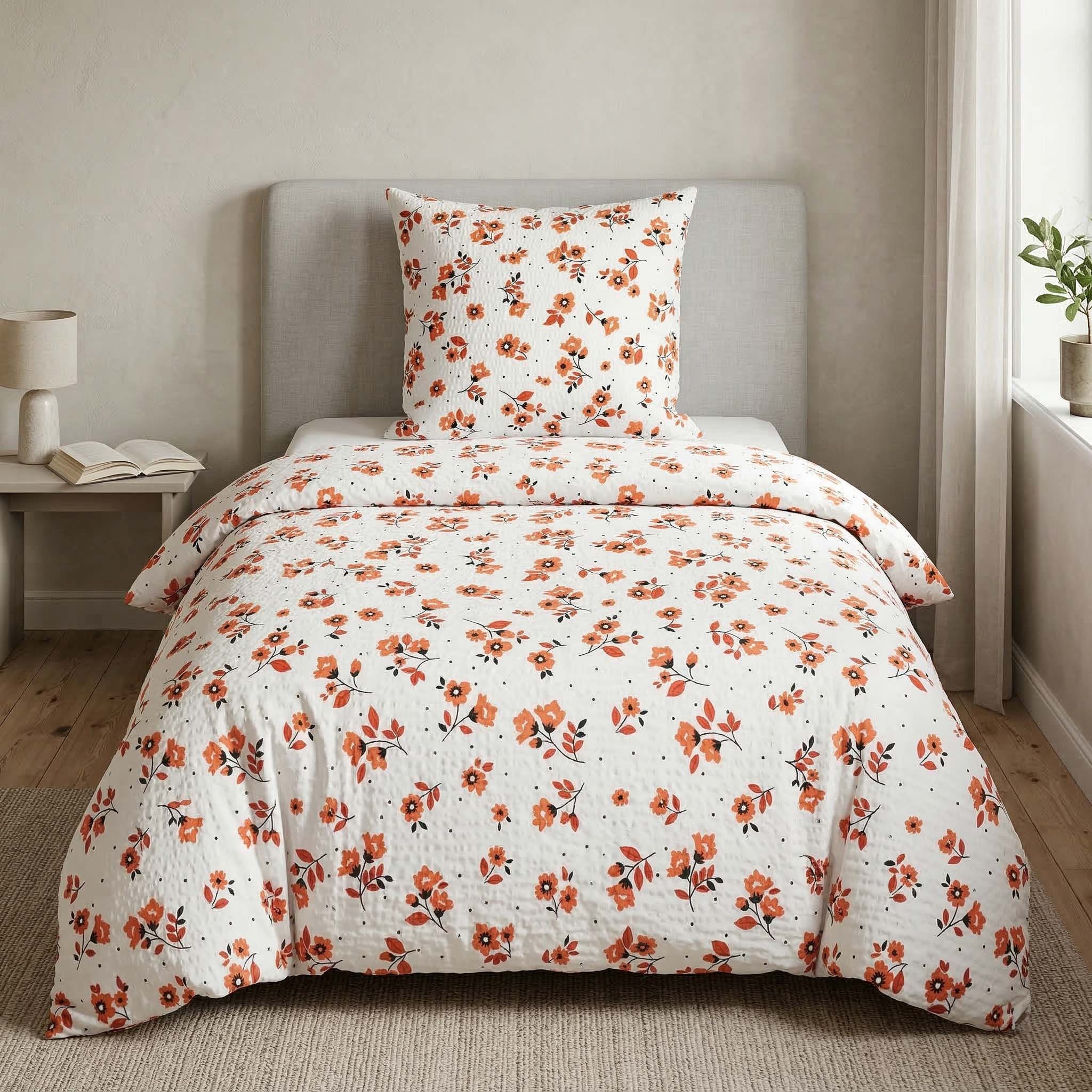 Seersucker Bettwäsche 135x200 cm – Weiß Blumen – 100% Baumwolle