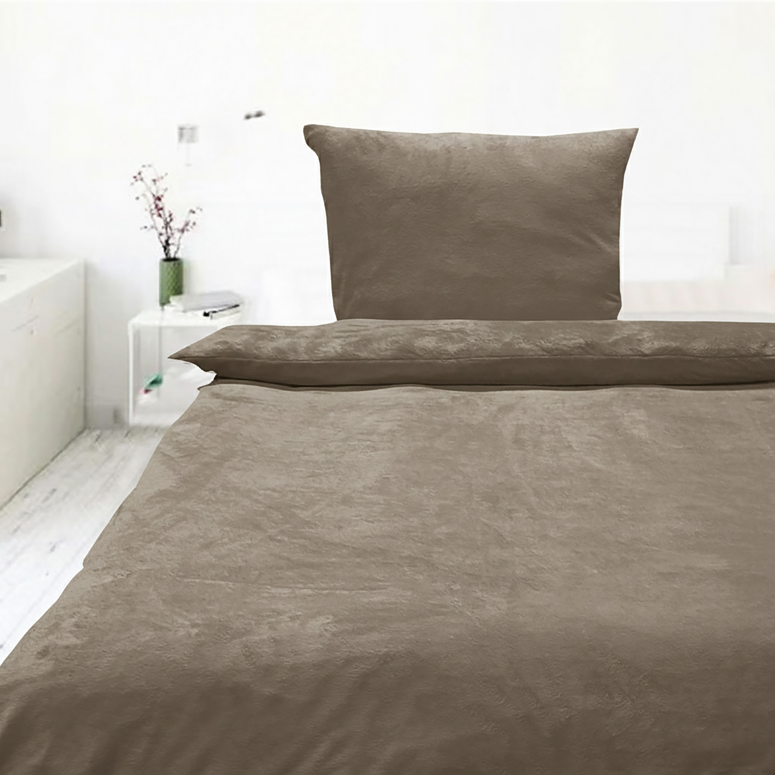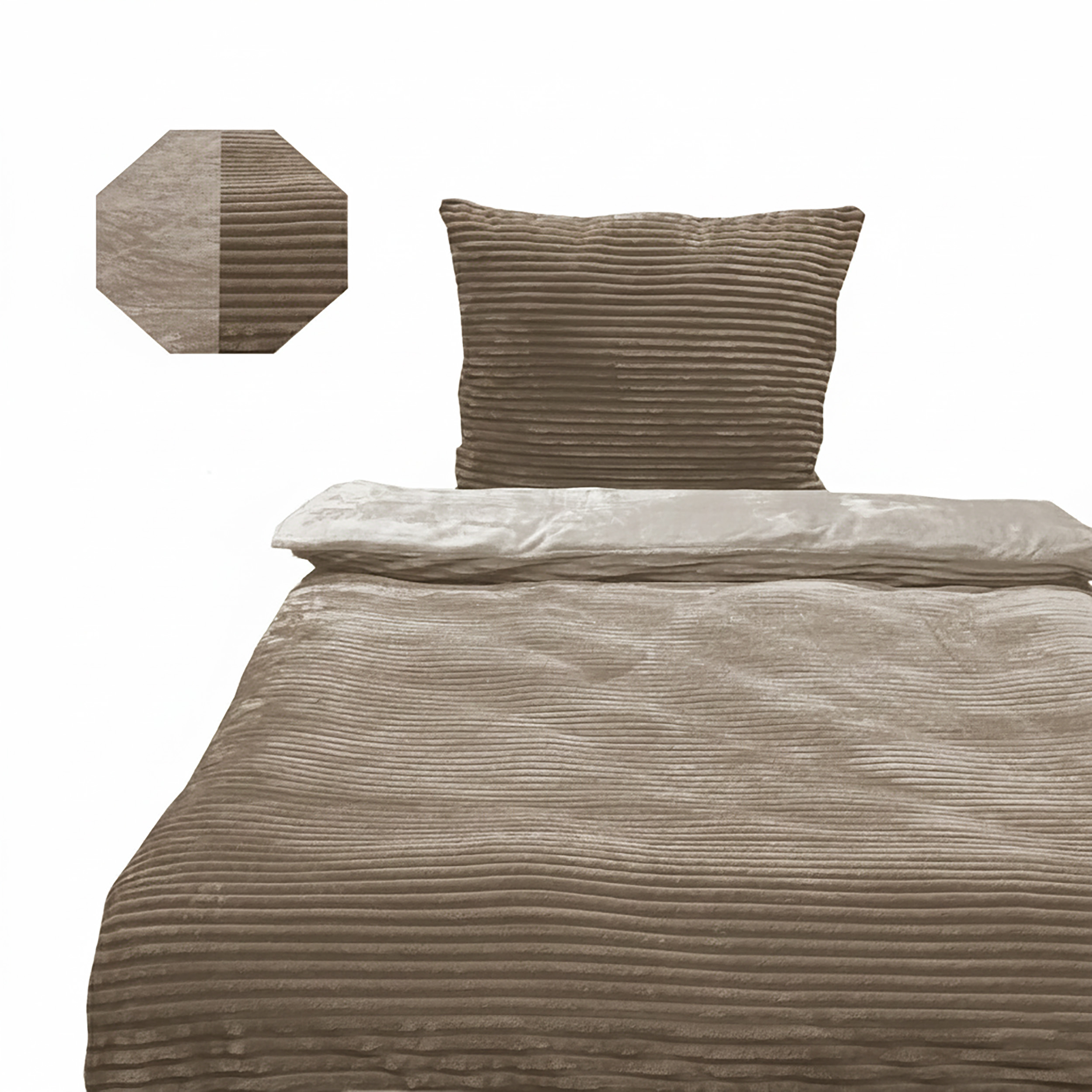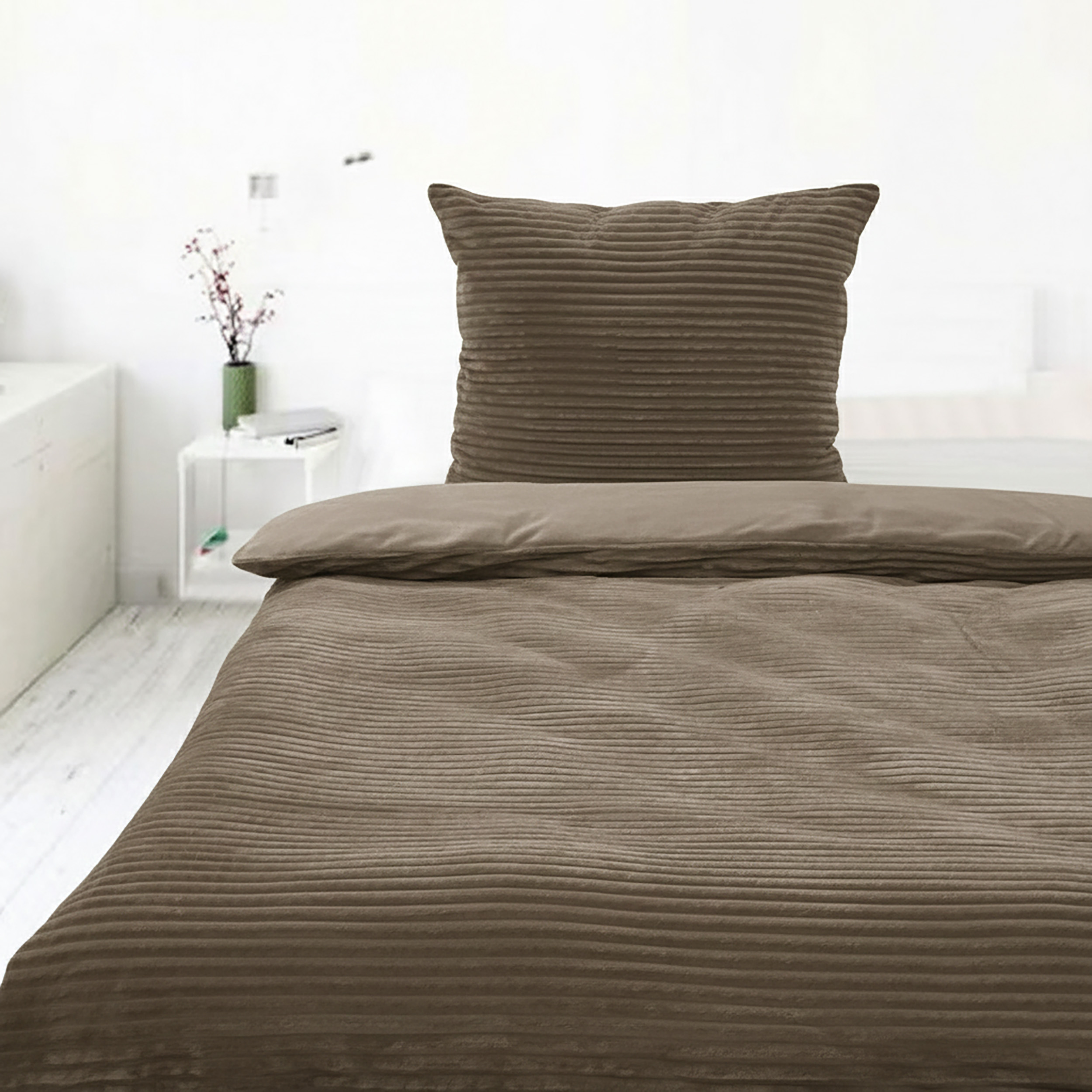 Bettwäsche | 2-teiliges Set | Soft-Touch Rippenstruktur | Taupe